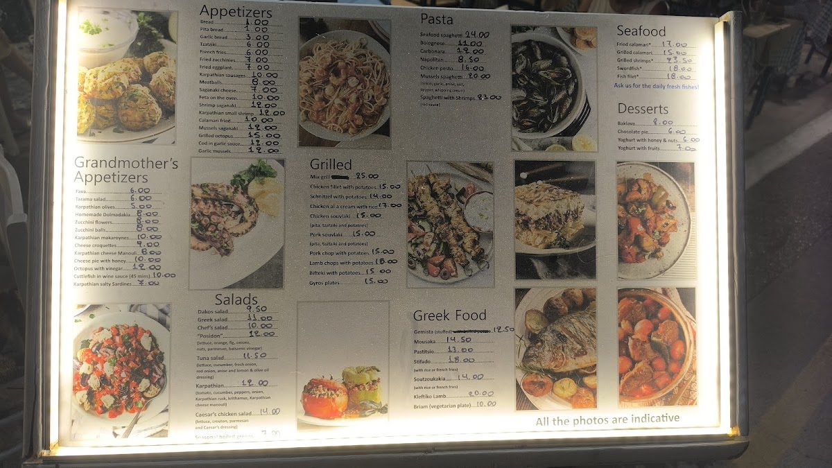 The menu at Posidon Restaurant in Pigadia, Karpathos, offers a delightful variety of local and Mediterranean dishes that promise to satisfy all tastes. One of the highlights is the Local Beer, a perfect pairing to accompany any meal with its refreshing taste. For a classic Greek experience, the Gyros Plate stands out, offering a generous portion of perfectly cooked meat served with pita bread, fries, and a fresh salad. Another must-try is Školjke Na Belo, a savory dish made of shellfish cooked in white wine sauce, providing a delicate and rich flavor.
